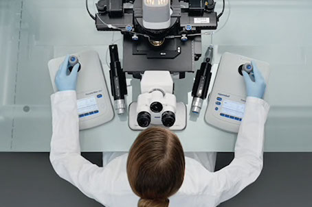 Working with the CellTram 4r Air and CellTram 4r Oil is like taking a breath of fresh air. Our new manual microinjectors have been designed with special emphasis on excellent ergonomics, ease of use and highest precision. They cover a wide range of research applications and suit all personal working techniques.