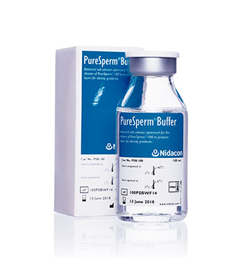 PureSperm Buffer is designed specifically for two functions; first as a balanced salt solution for diluting PureSperm 100 to make up two layers of different densities for the gradient, and secondly, to reduce viscosity in the semen sample. The formula of PureSperm Buffer is optimized for maximum sperm survival and greatest yield during density gradient centrifugation.