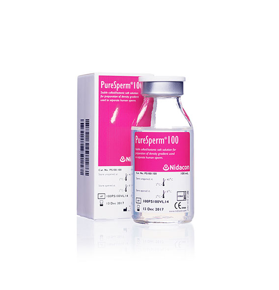 PureSperm 100 is a sterile colloidal silica suspension in an isotonic salt solution. It is optimized for the preparation of density gradients used to separate and purify human sperm from semen for use in Assisted Reproduction Technologies (ART). This system effectively separates normal sperm from lymphocytes, epithelial cells, abnormal, immature and senescent sperm, cell debris, bacteria and seminal fluid.